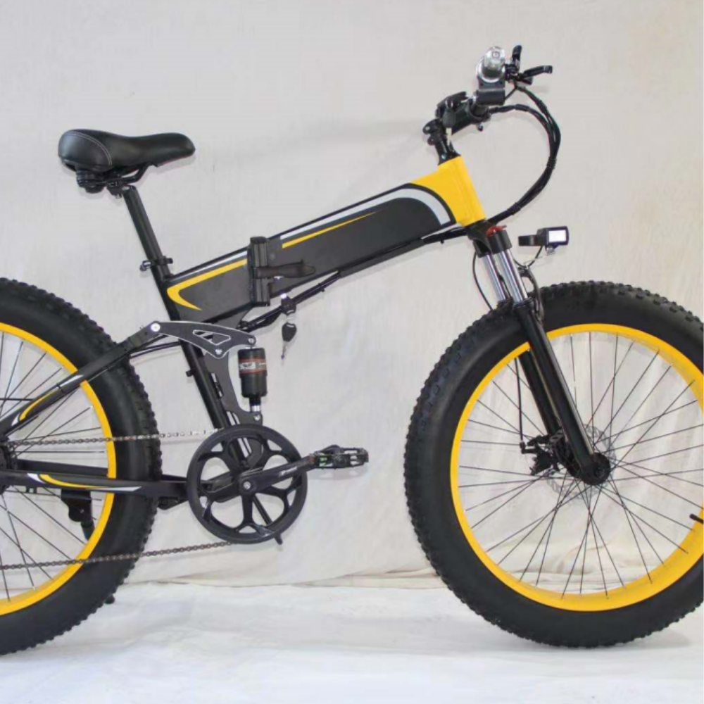 SMLRO S11 Full Suspension Folding Mountain Snow Bike | 350W 500W 700W 1000W - Black yellow / Snow Tire / 350W 10Ah is backordered and will ship as soon as it is back in stock.